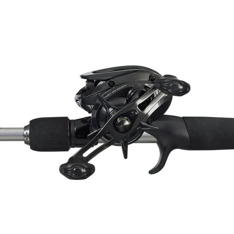 Abu’s Fast attack casting combo gives you a quality well balanced medium weight baitcasting rod and reel package. Paining a high quality rod manufactured from 24T carbon fibre and with stainless steel guides. With a smooth compact low profile baitcasting reel fitted with 4+1 ball bearings and packing Abu’s unique power disc drag and Duragear brass gearing. Carrying a 10-40g casting weight it’s an ideal setup for working soft plastics, hard baits and spoons.Â