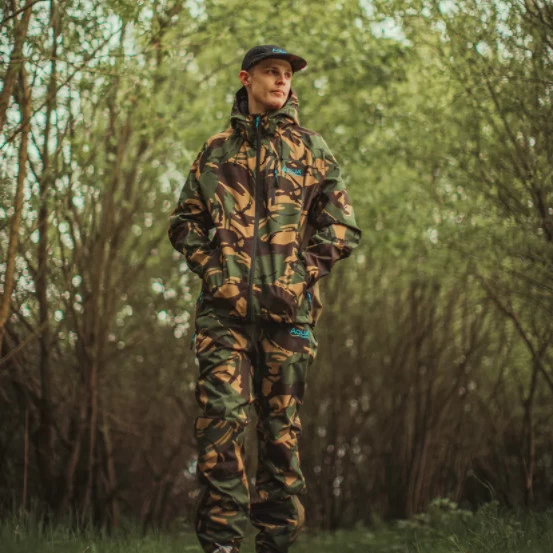 The Aqua F12 DPM trousers give you high performance breathable waterproof legwear that’s ideal for helping you cope with everything the weather can throw at you. Sporting a triple layer material with a 10,00mm hydrostatic head rating. With an elasticated waist and a pair of waterproof zipped pockets. The material used has a slight stretch to it helping you stay manoeuvrable when your out on the bank.