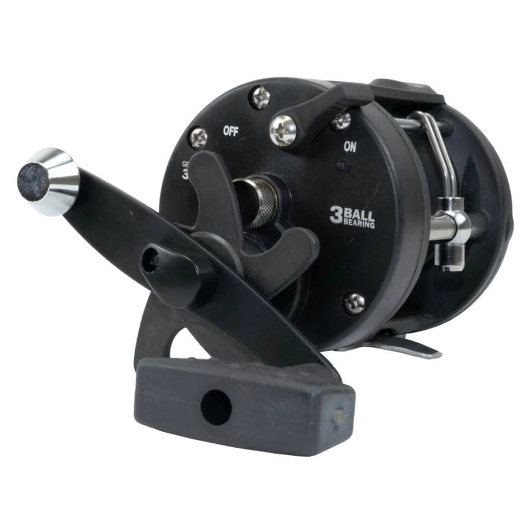 With bags of cranking power, this matt black multiplier features three stainless steel bearings which really excels when fishing in shallow to medium depths!