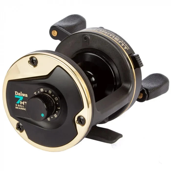 Daiwa’s Millionaire 7HT the first and original open frame multiplier designed to meet the exacting criteria of the demanding tournament casting circuit, and the discerning UK beach angler. The genuine article, the 7HT verged on design perfection hence it still remains top of its class, unsurpassed. While your distances might not match that of Paul Kerry the Millionaire, the 7HT will help you to reach distances you had previously only dreamt of, and that’s straight from the box. it’s fantastic gear design, three stainless steel ball bearings and 6.1:1 retrieve ensure that it’s as fast and smooth on the retrieve as it is on the cast.