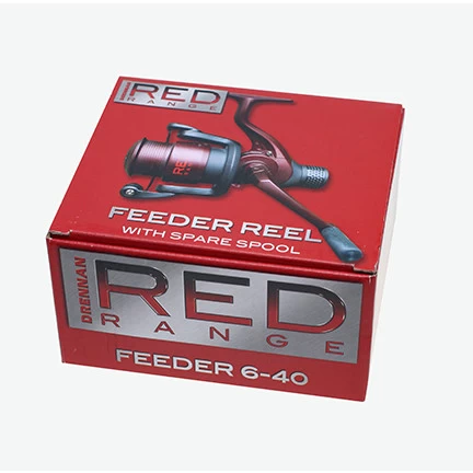 The Drennan red range 60-40 reel, a super smooth rear drag reel to cover all your feeder fishing needs. Featuring an instant silent anti-reverse, a 5.2:1 ratio plus 5 ball bearings. They come supplied with two spools, both designed to hold 100m of mono lines and give you perfectly filled spools without the need for any backing. They also come with tough rubber buttons that clip onto the spool to identify the breaking strain of line.