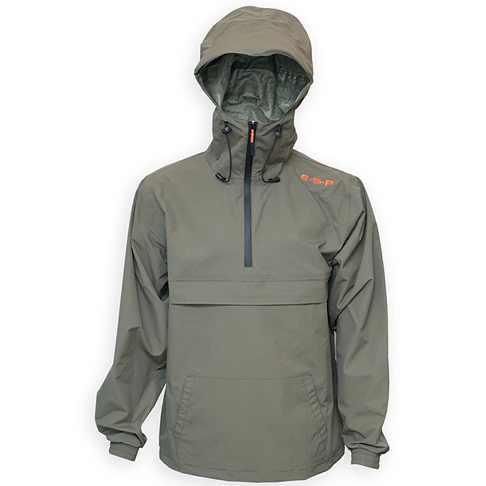 - The fitted cut offers freedom of movement and the performance fabric is 5,000 waterproof and 3,000 breathable, olive green with contrasting ESP orange logo and zip pulls.