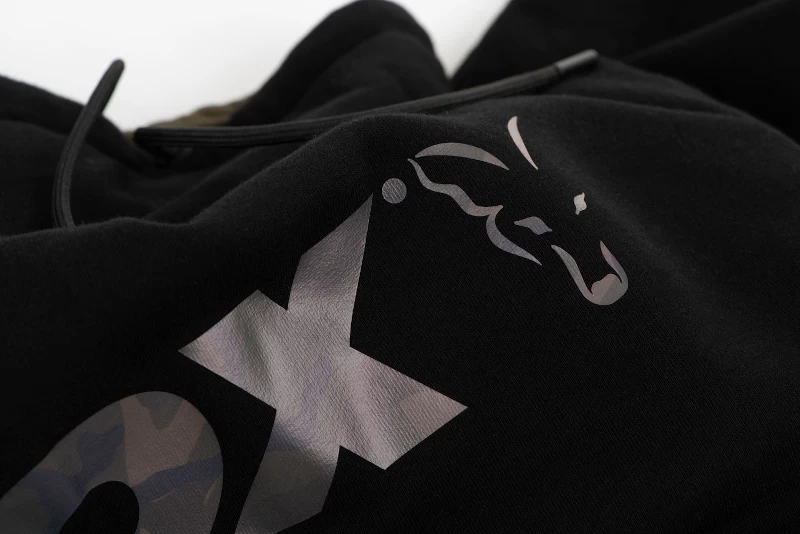 Carrying a dark design with camouflaged highlights and the famous brand logo embossed in silver on the front. The drawstring hood and elasticated cuffs help you keep a little warmer and kangaroo pocket is perfect for tucking your hands while waiting for a run.