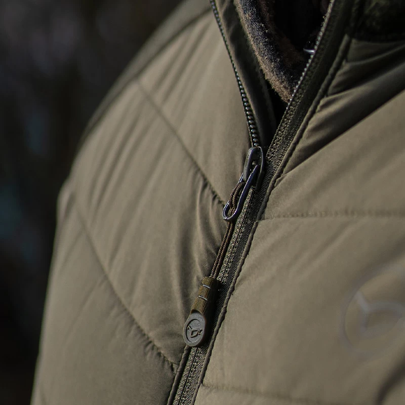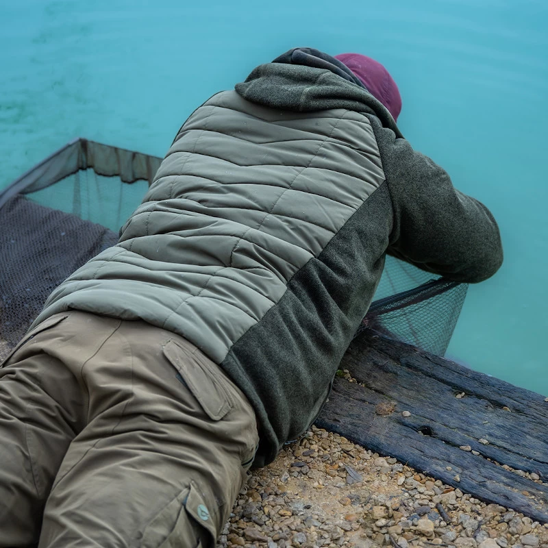 Korda’s Hybrid Jacket, a bringing together of Korda’s best selling polar fleece and puffer jackets. Essentially a warm and lightweight heavy knit fleece with a puffer style mid section. Providing exceptional comfort and freedom of movement when casting and baiting. The puffer mid section is also windproof and they feature a longer back panel that prevents any draughts when your sat waiting for a bite. Fitted with a fleece lined hood and two zipped fleece lined pockets.