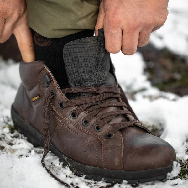 High quality hardwearing waterproof footwear with a high ankle giving you that extra level of protection. With a solid moulded one piece sole double stitched to the leather upper. Available in a choice of both brown, or green colour schemes. They feature a polyurethane membrane which allows water vapour out, but stops any rainwater getting in. Keeping your feet dry and comfortable in all conditions.