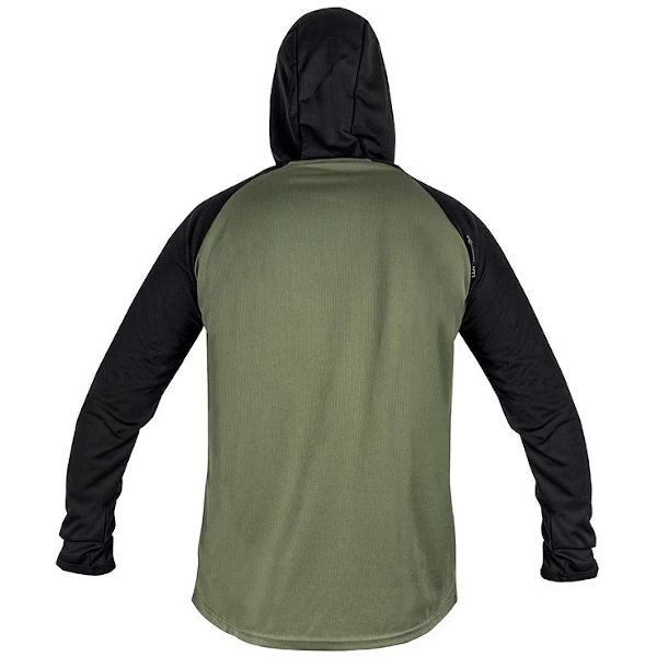 Thanks to its fast water wicking properties, these make a great top layer in the summer, and double up as a decent base layer in winter. With its black arms and hood, and Khaki front and back. It blends in nicely with and clothing choices from the rest of the range.