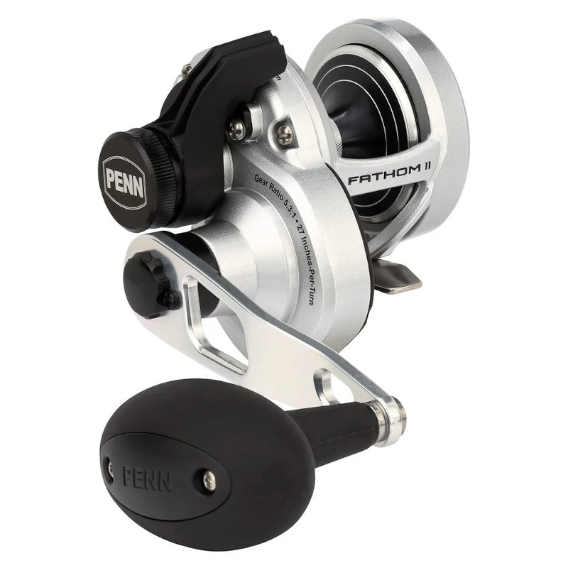 Penn’s Fathom II Lever Drag Reels, a world class reel series that offers a number of upgrades and improvements to the best selling original. With new models available along with new sizes and features. The Fathom II Lever Drag now has a more compact Integrated palm side plate and frame that means they fit more comfortably in the hand. They also have a pull-to-turn pre-set knob on the Dura Drag system for true set and forget functionality. At the core is a stainless steel main and pinion gear and a forged and machined aluminium spool for maximum durability.