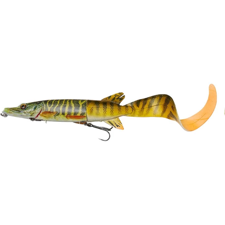 A highly realistic baby pike pattern with an exaggerated curl tail that give plenty of movement, even on a slow retrieve. A lure that draws a ferocious territorial response from larger pike. Fitted with a hook harness style release rig that will detach from the main body of the lure when your playing your fish. You can also reverse the tail so the lure travels just under the surface, making it a great option during the warmer months of the year.