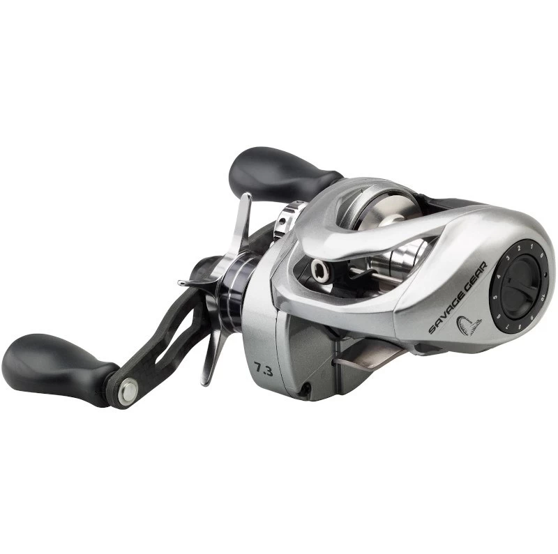 Savage’s high end top of the range SG10 reel series combines all the very latest engineering, manufacturing techniques and materials to give you a no compromise baitcasting reel that more than holds its own against the other familiar top end brands. They encompass an impressive array of unique features and advances in just about every single component, from the bodywork through to the gearing. Stand out mentions include the super strong hard anodised worm shaft, the 9+1 ball bearings and centrifugal breaking system. All running smoothly with their own Duragrease coating on all the internals.
