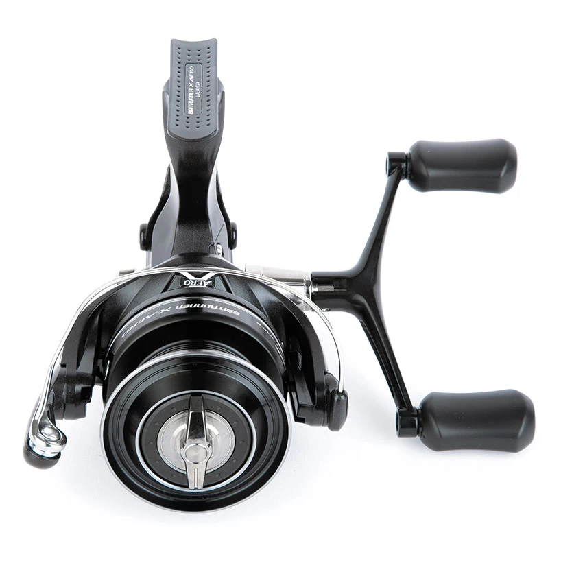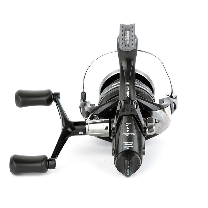 An updated re-release of Shimano’s best selling X-Aero 4000 sized baitrunner reel. A popular reel choice for barbel and specimen coarse anglers. Loaded with unique Shimano features that set this apart from the crowd. Manufactured with Shimano’s XT-7 main body and rotor, and fitted with strong reliable zinc diecast gears. The spools themselves have been cut with the AR-C angled lip, to improve line release on casting. This coupled with the Varispeed II line lay helps you gain more distance and accuracy. Fitted with a double handle and comes with a diecast aluminium spare spool.