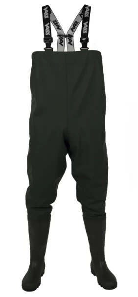 - This range features include sturdy PVC Wellington boot fused with the PVC/ Polyester material body to ensure reliability and comfort are achieved. An internal pocket and wider braces are also included in this wader. Unlike other manufacturers in this affordable price category are pleased to offer the option of ‘Tungsten’ studded soles which makes the 600 series probably the best value Studded PVC wader on the market!